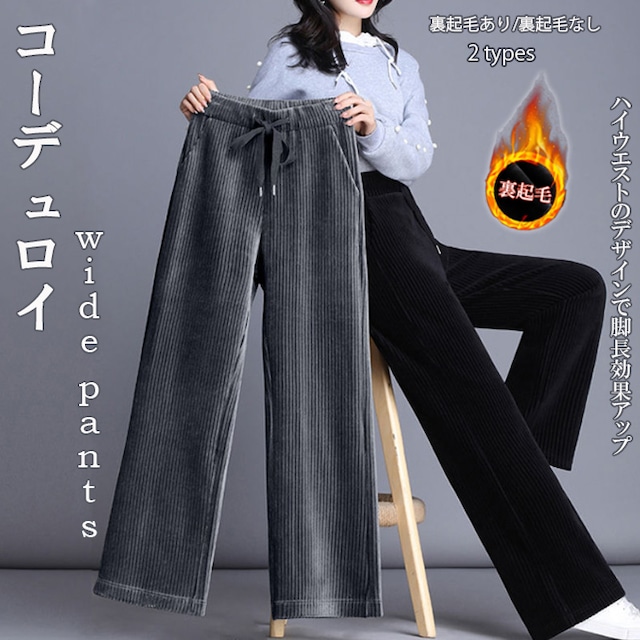 新作 トレンド レディース リブ コーデュロイ ワイドレッグ 縦リブ ウエストゴム ゆったり ソフト
