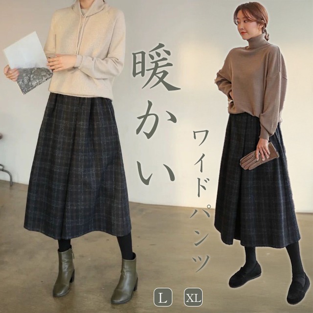 pants308 ■コメント ・落ち着いた大人っぽい印象を与えてくれるグレンチェック柄。 ・足のラインを拾わないワイド幅でストンと落ちたシルエットになり、 ・スラッと細く見せてくれます。 ・自然な美シルエットと上品な印象を与える一着です。 ■サイズ(単位:約cm) L/体重参考:45-70KG XL/体重参考:70-100KG ※平置き採寸の為、1-3cmの誤差がある場合があります。予めご了承下さいませ。 ■カラー 画像に記載 ■裏地 なし ■生地の厚さ 普通 ■透け感 なし ■素材 ポリエステル80%、綿20% ■重量 300g