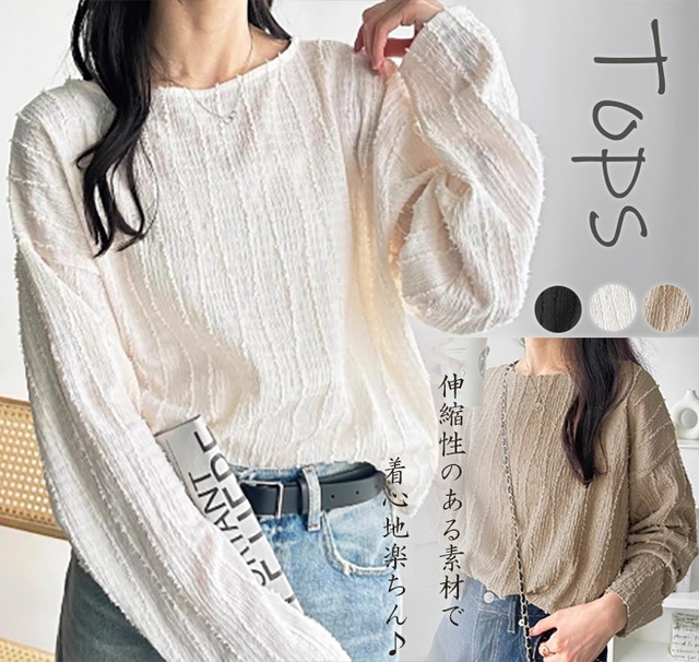 2025新作 レディース 長袖 シャギー 着回し レイヤード 重ね着 薄手 クルーネック ゆったり