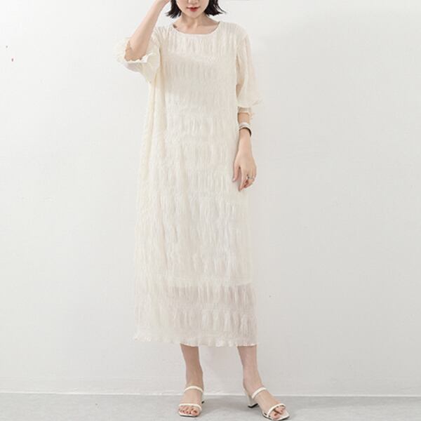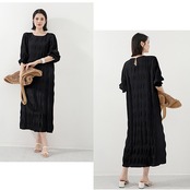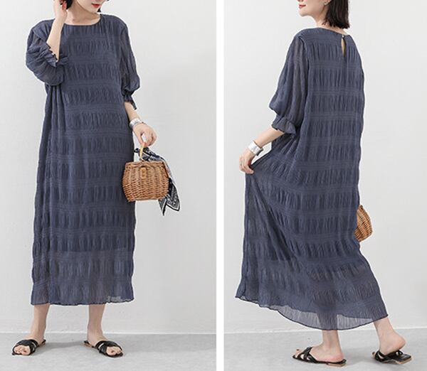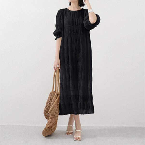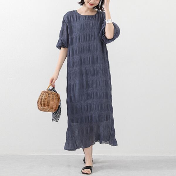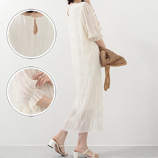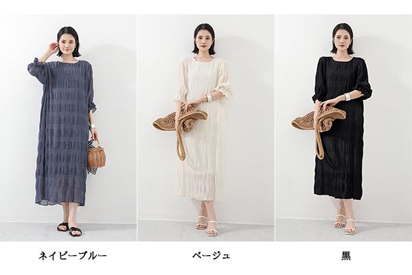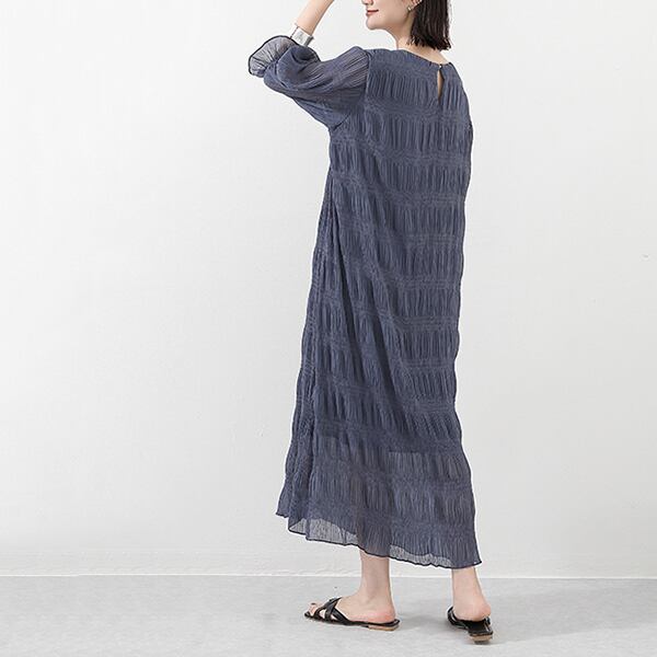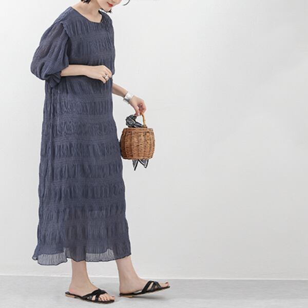 ・一枚でも映えるシャーリングゴムシフォンワンピース。