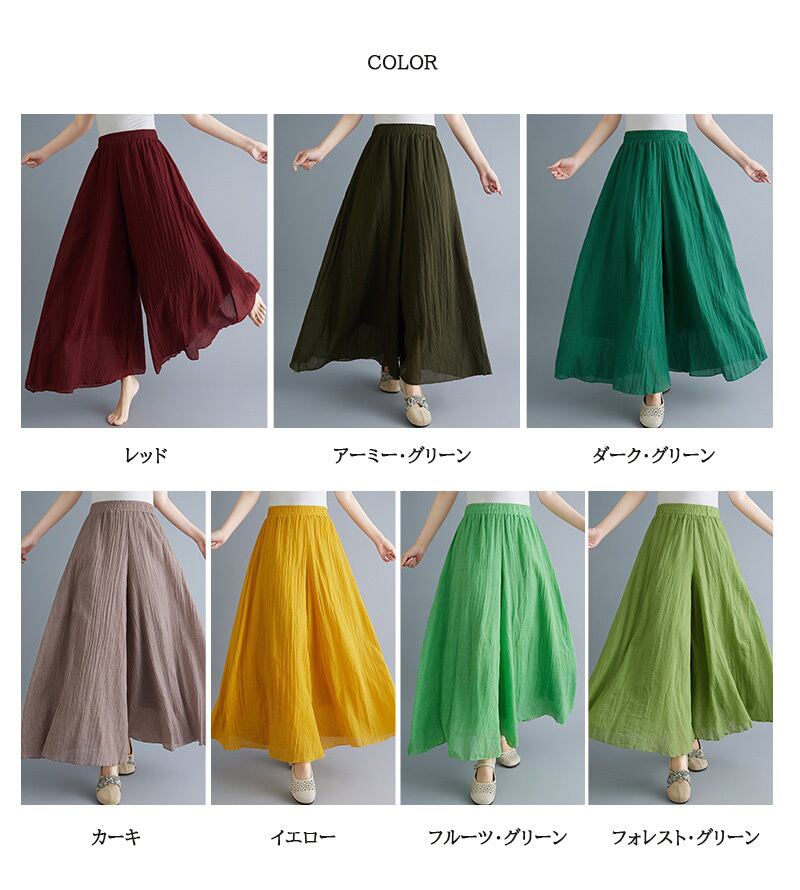 ・軽量で涼しい麻混ワイドパンツです。