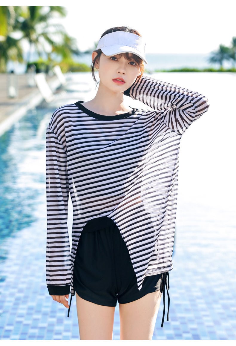 ・カジュアルスタイルを楽しめるデザインの水着3点セット。