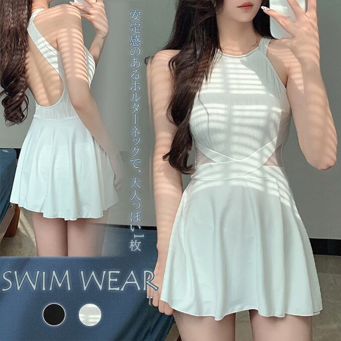・安定感のあるホルターネックで、大人っぽい1枚に。