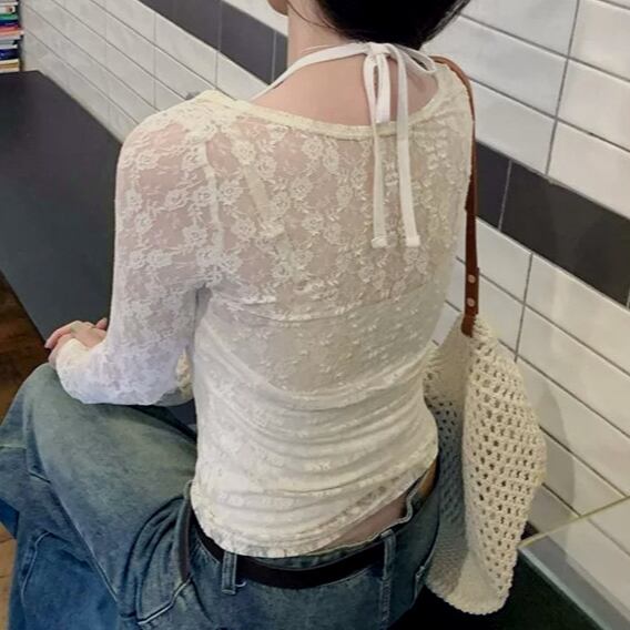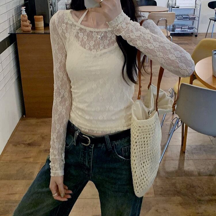 ・コーデに華やかさをプラスしてくれるレース仕立て。