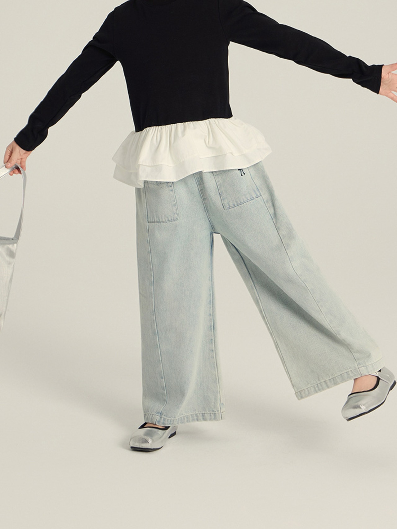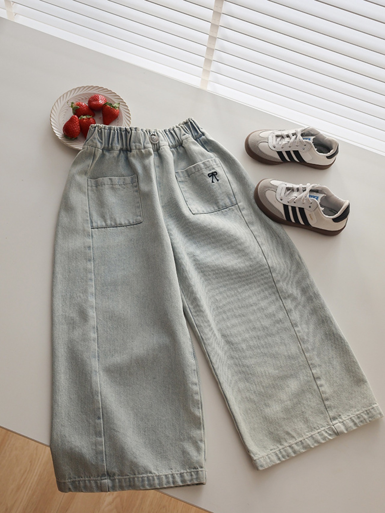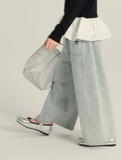 ・トレンドのデニムワイドパンツ。