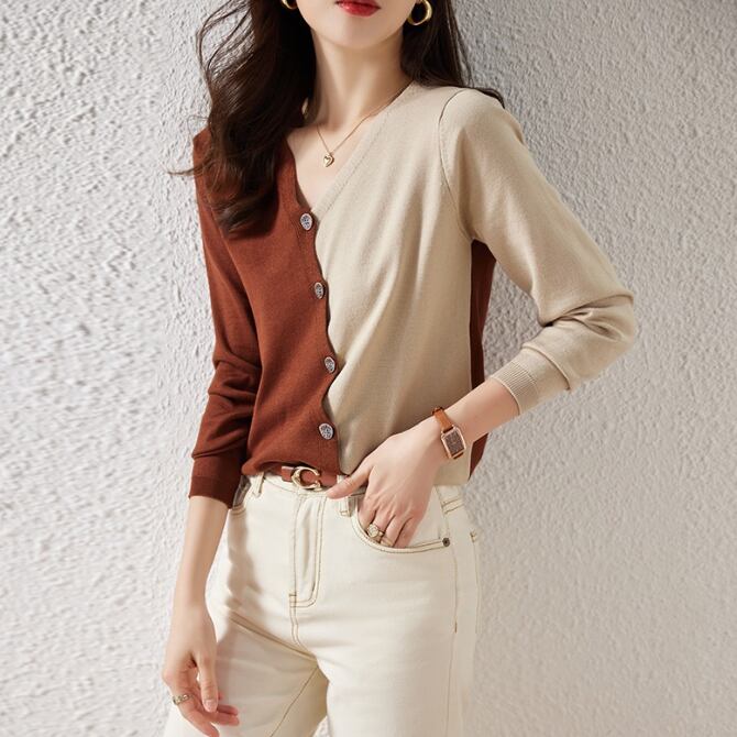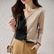 ・ずっと着ていたくなる肌触り♪ 顔周りをスッキリ綺麗に魅せてくれるVネック。