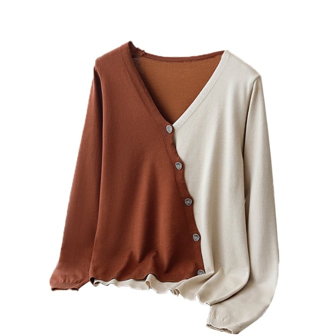 ・左右バイカラー+ボタンがななめに並んだカシュクールデザイン 。
