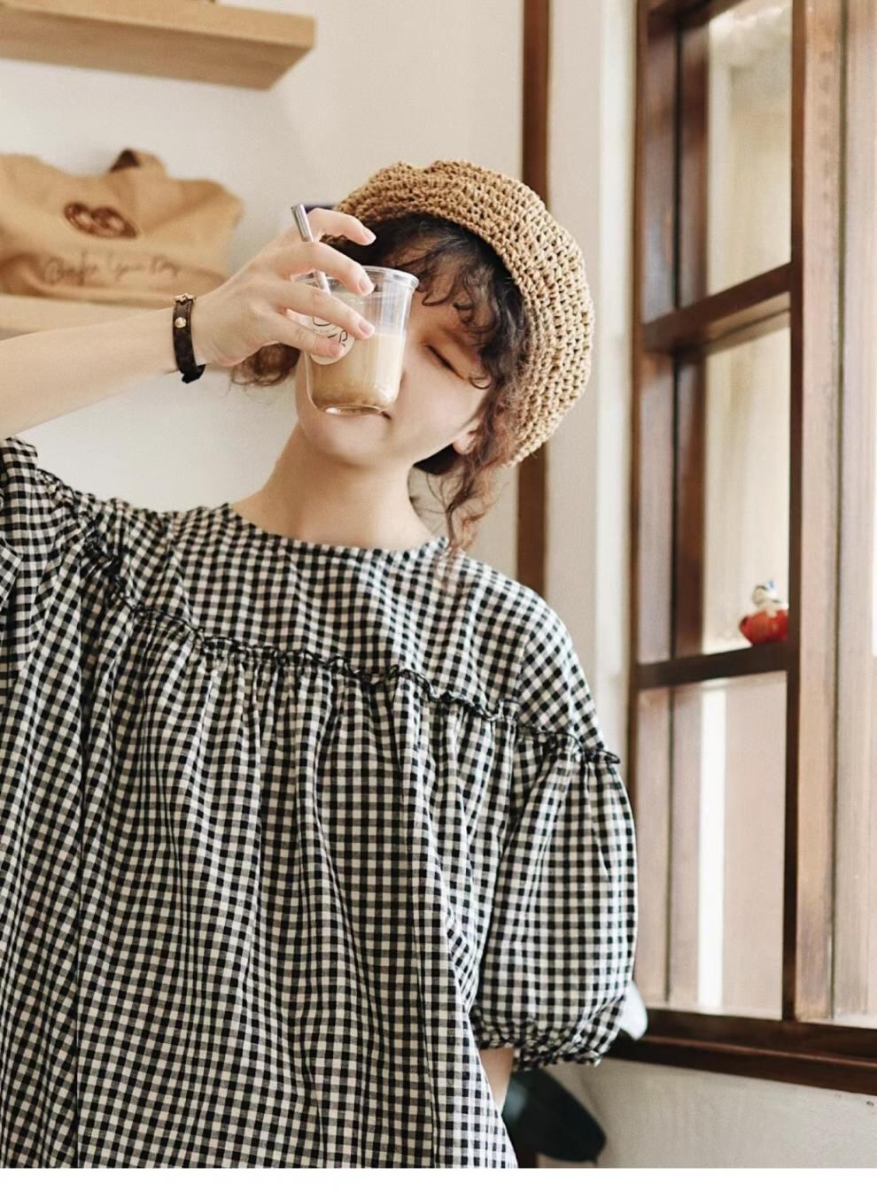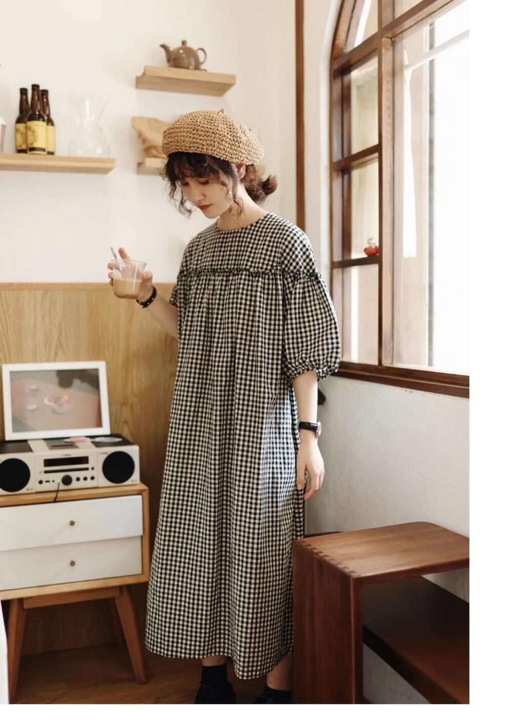 ・たっぷりのフリルとギャザーが可愛さをプラス、チェック柄ワンピース。