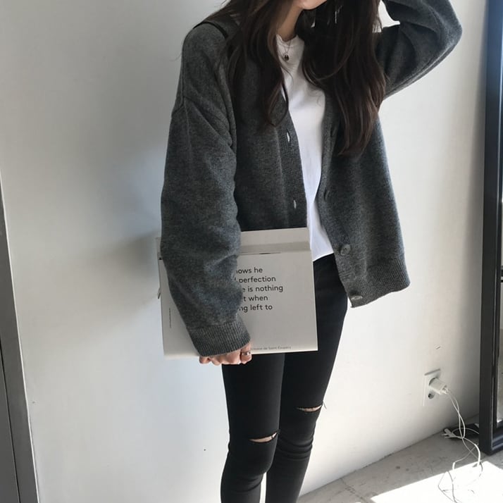 秋冬定番アイテムのニットカーディガンは程よい丈感でスカートやワンピ、ジーンズにも合わせやすいです。