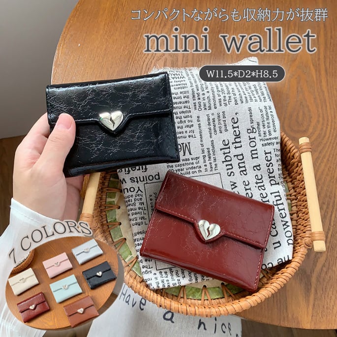 ・ハートのワンポイントがとっても可愛い 二つ折り財布。