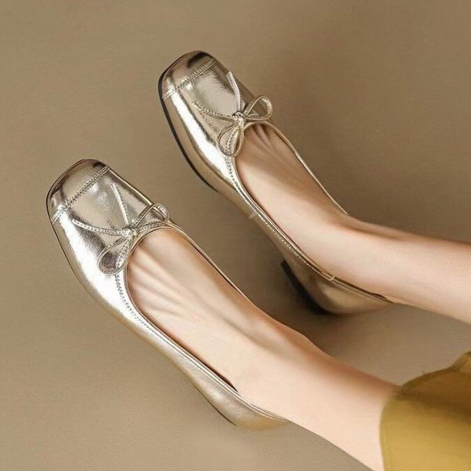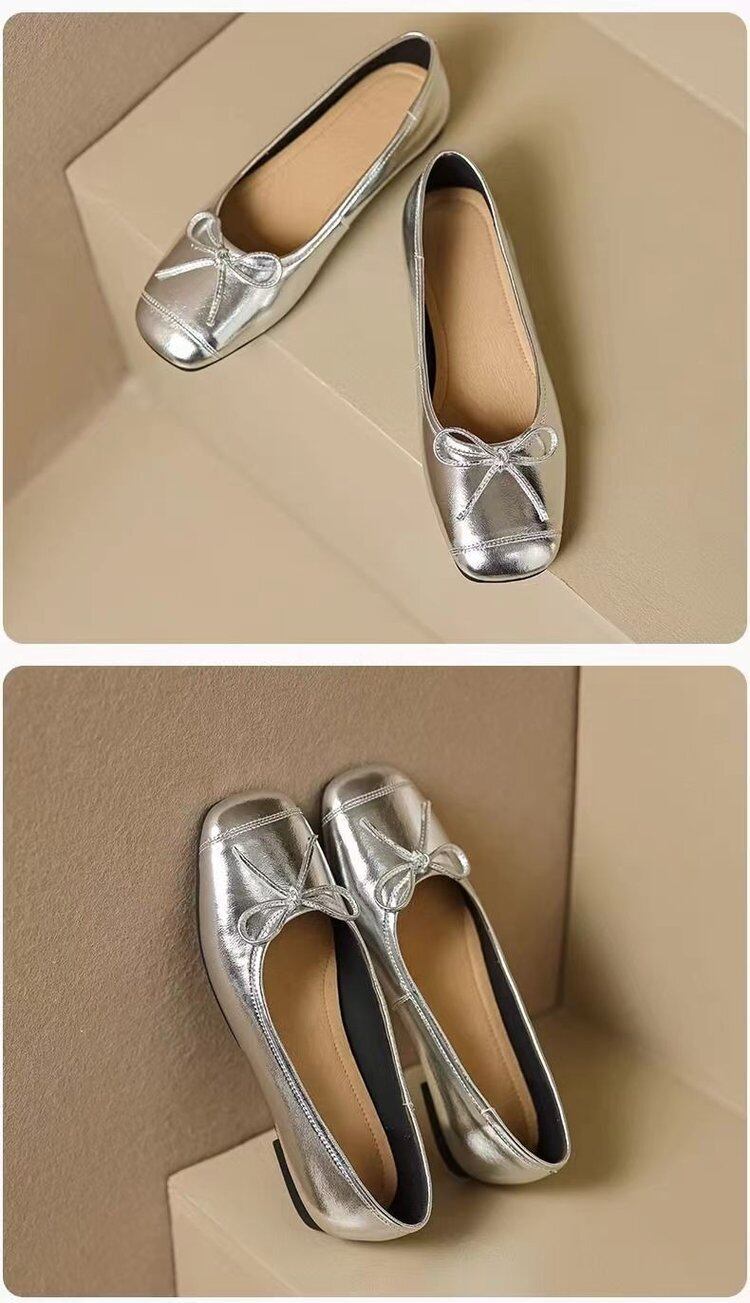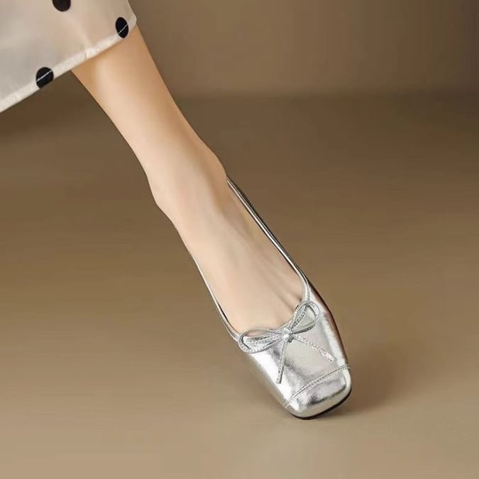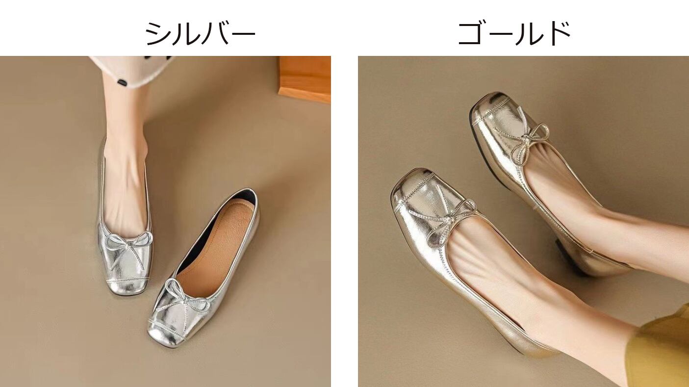 ・スクエアトゥにリボンでトレンドの韓国バレエコア風に。