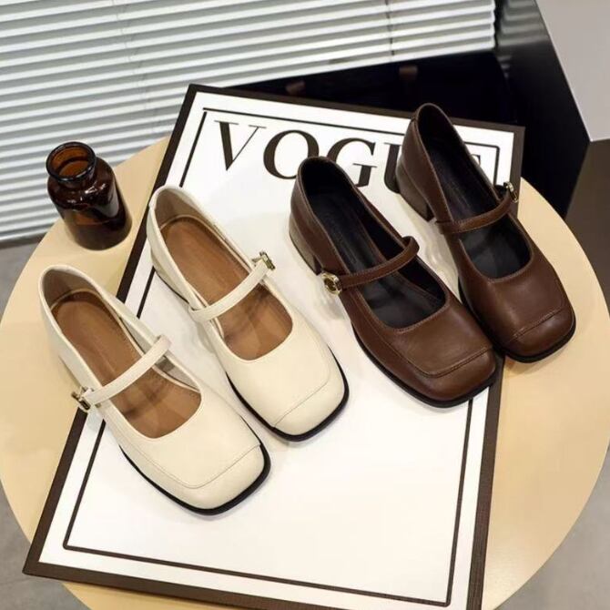 ・足先が痛くないスクエアトゥのパンプス。