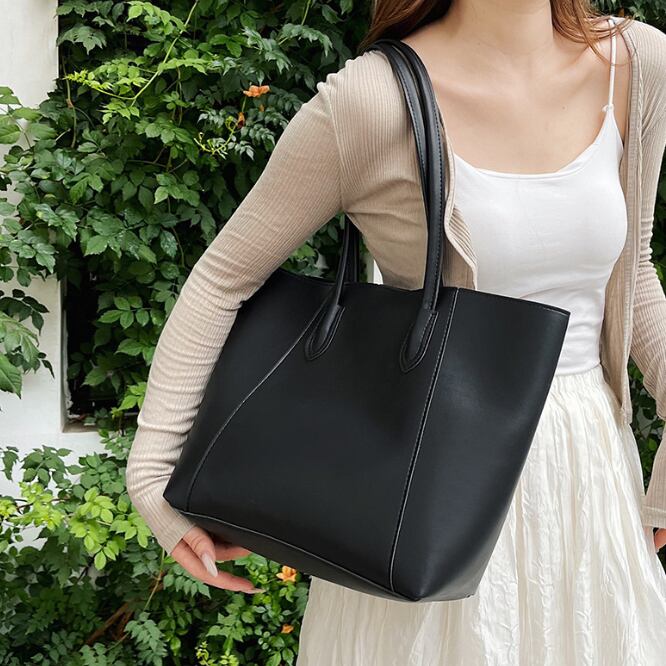 ・本革のような艶やかな光沢のあるソフトな質感のトートバッグ。