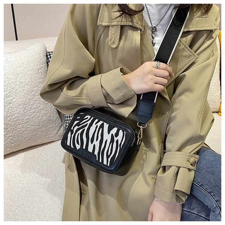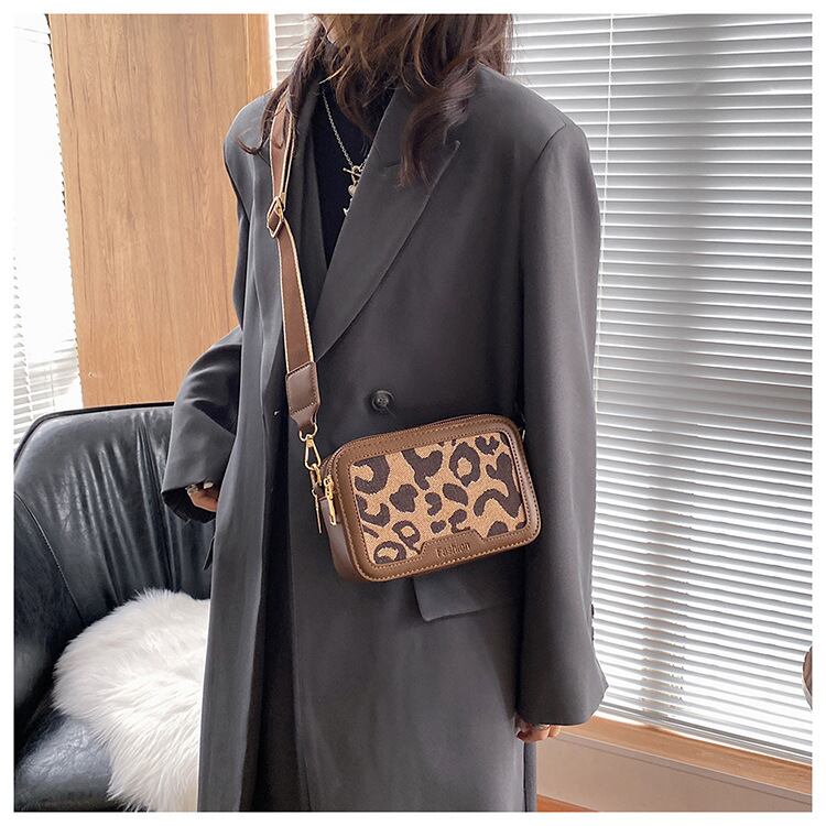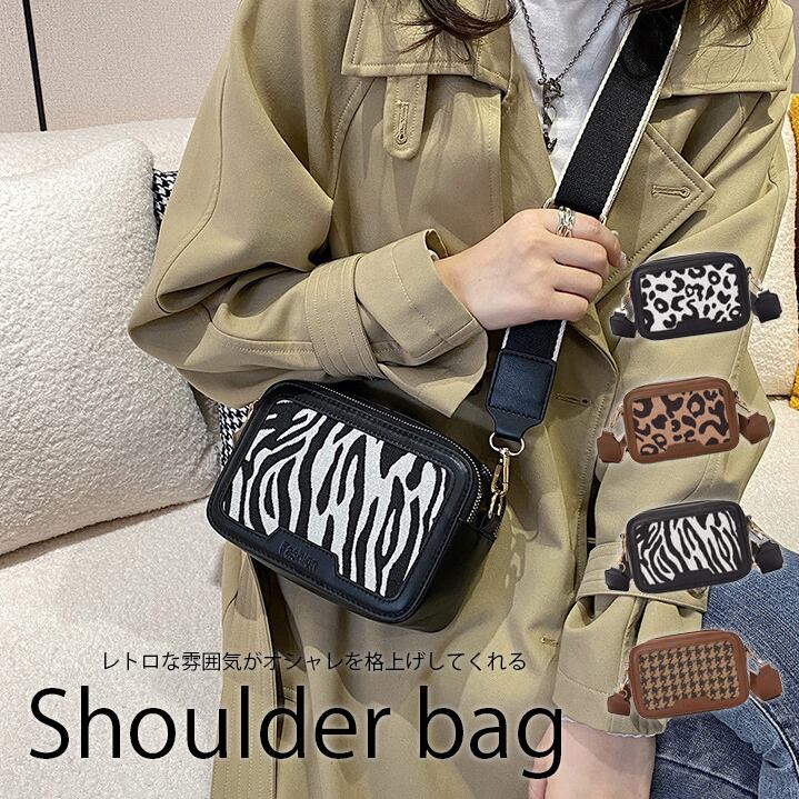 ・アニマル柄を取り入れたデザインのスクエアショルダーバッグ。