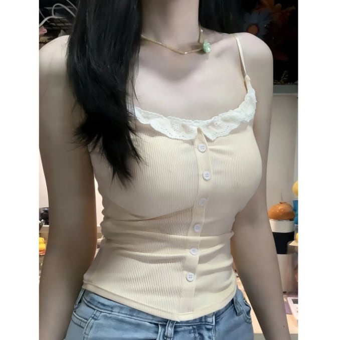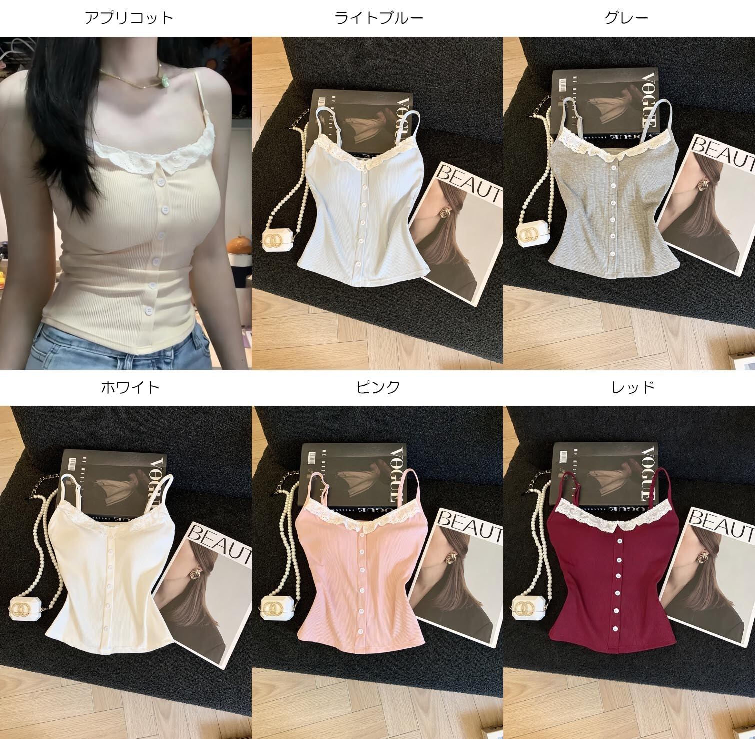 2026新作 ベーシック キャミソール シンプル 無地 インナー 伸縮性 フリル かわいい 着回し レース切替