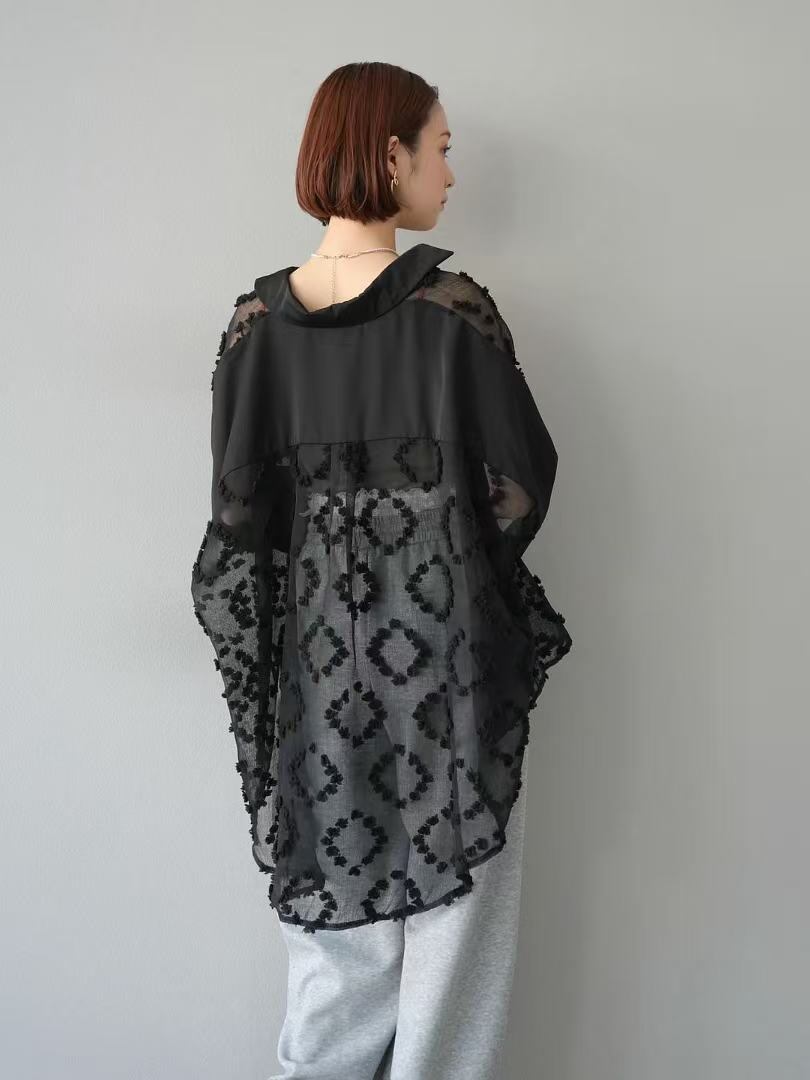 新作 異素材シアーオーバーハーフシャツブラックページ